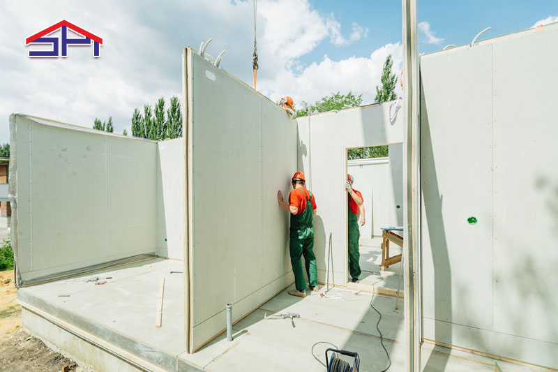 Tahap instalasi mencakup pemasangan seluruh komponen prefabrikasi sesuai dengan desain yang telah direncanakan. Panel dinding disusun, modul diintegrasikan, dan struktur baja dirakit secara sistematis.